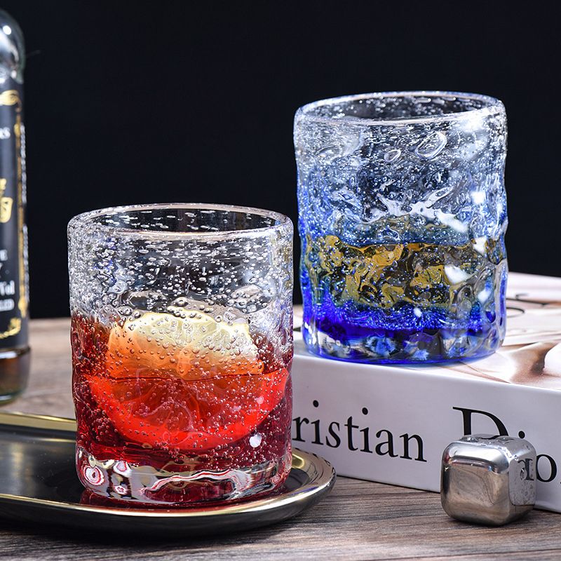 브랜드: 인투워크 제품명 : 버블 유리 물컵 소재: 크리스탈 유리 기술: 기계 불기 색상: 블루, 레드, 핑크